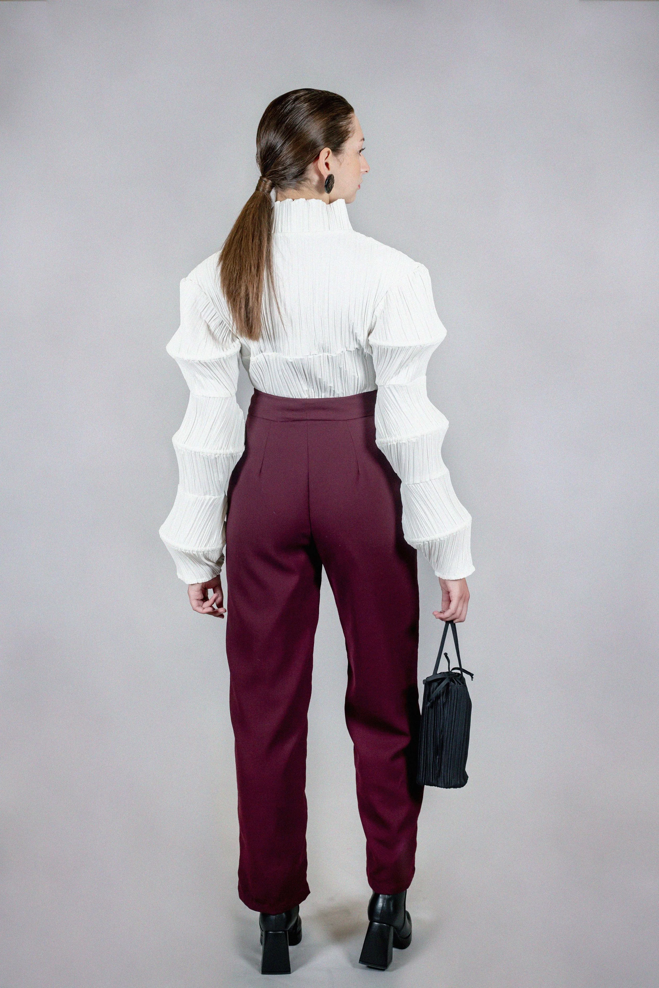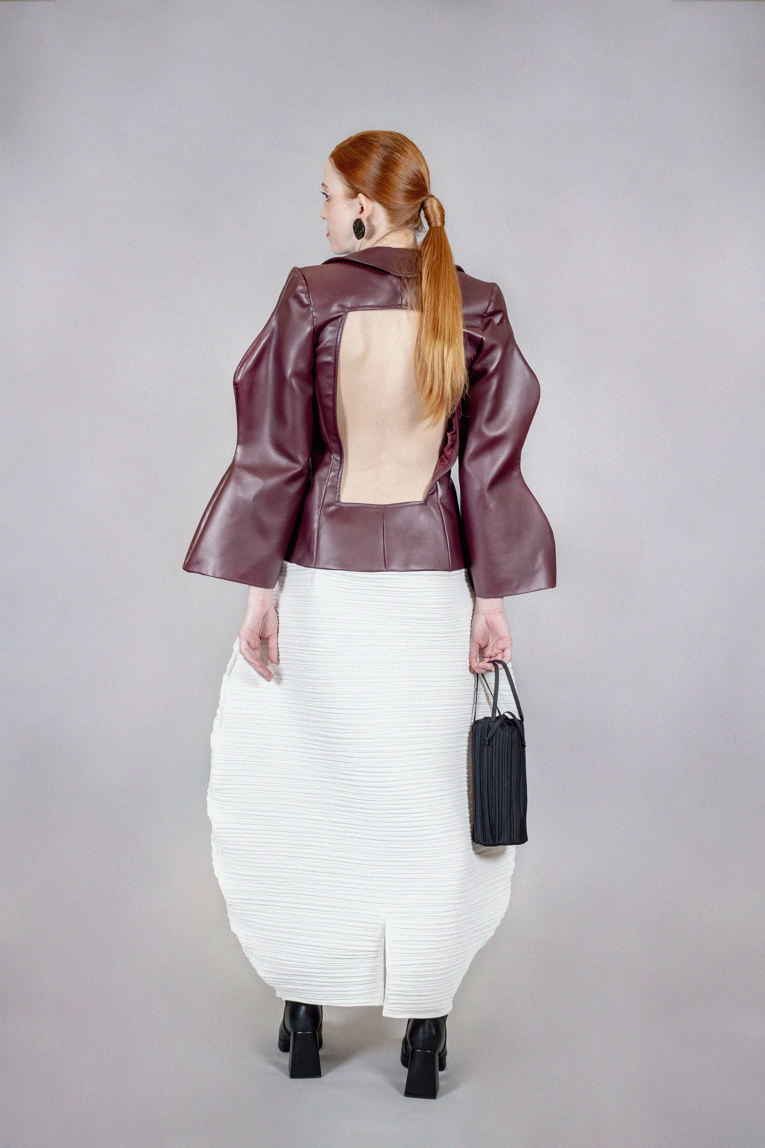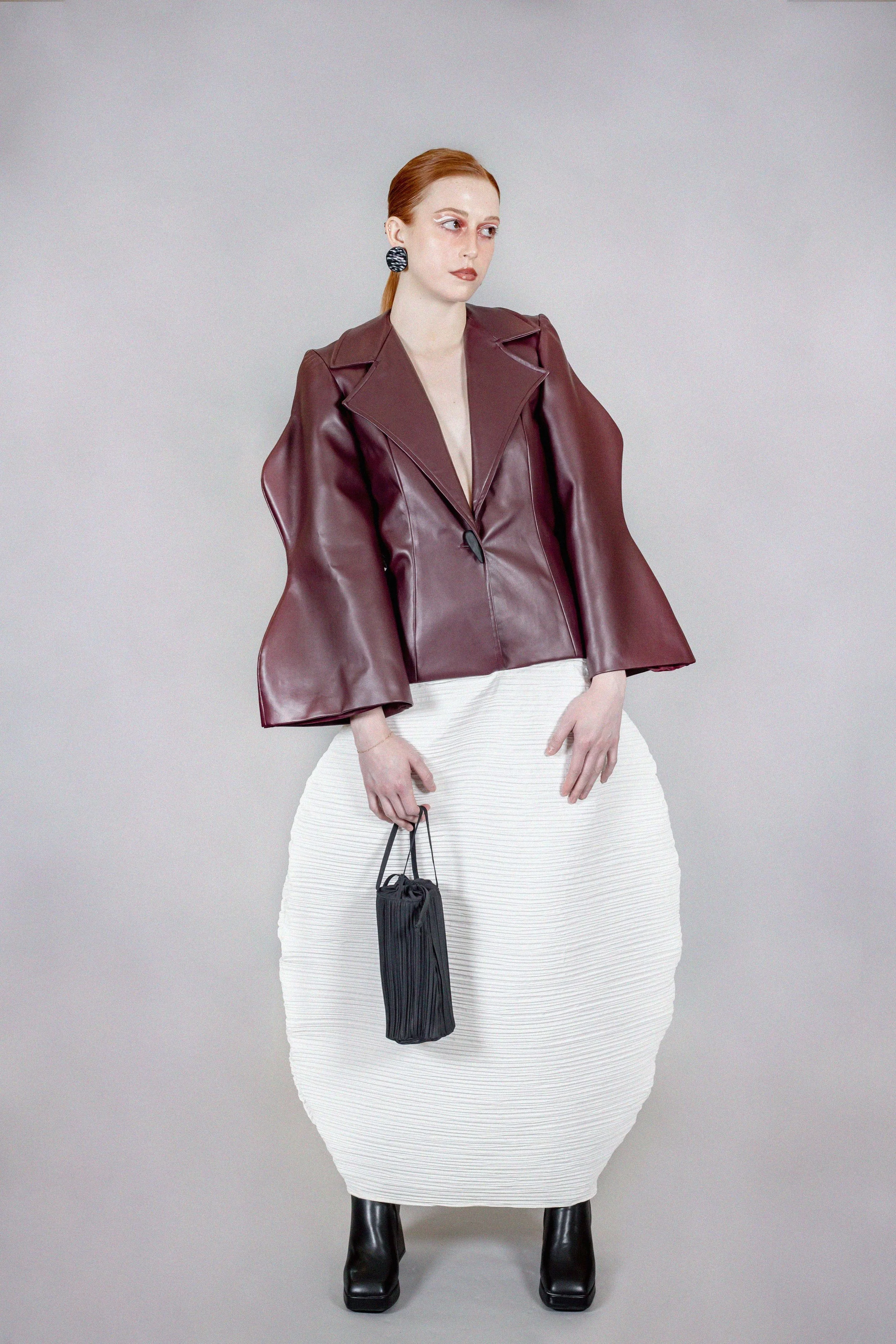 For my launch as a designer, I wanted to translate a feeling to which words only falteringly reach: melancholy. Melancholy is quite a complex concept because it involves sweetness and bitterness at the same time. This feeling lives within my memories of being part of a divorced family, moving to a new country, and experiencing the grief of losing my grandmother as a child. These experiences have involved bitterness but sweetness and blessings as well, which is why I feel like this collection reflects my most intimate honesty. I took a journey to my past throughout my creative process. I listened to all the songs that brought back a certain feeling or moment. I kept a journal to document memories, sensations, and define the meaning of nostalgia for me. I revised drawings I made as a child and took shapes found in these to manipulate into sculptural pieces. I found deep inspiration in letters my mother wrote to her grandmother when she was little. The memory of these women accompanied me throughout the process, and I hope they are proud of the outcome wherever they may be.